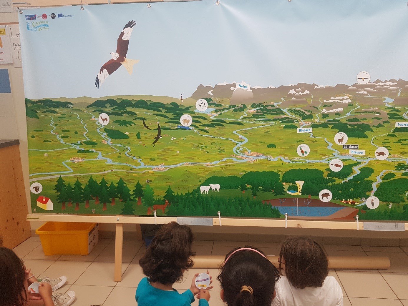 Pour consolider leurs acquis et aller un peu plus loin dans la compréhension du fleuve, de la biodiversité et des usages qui y sont associés, les élèves ont travaillé en classe autour de la fresque « fleuve grandeur nature ».