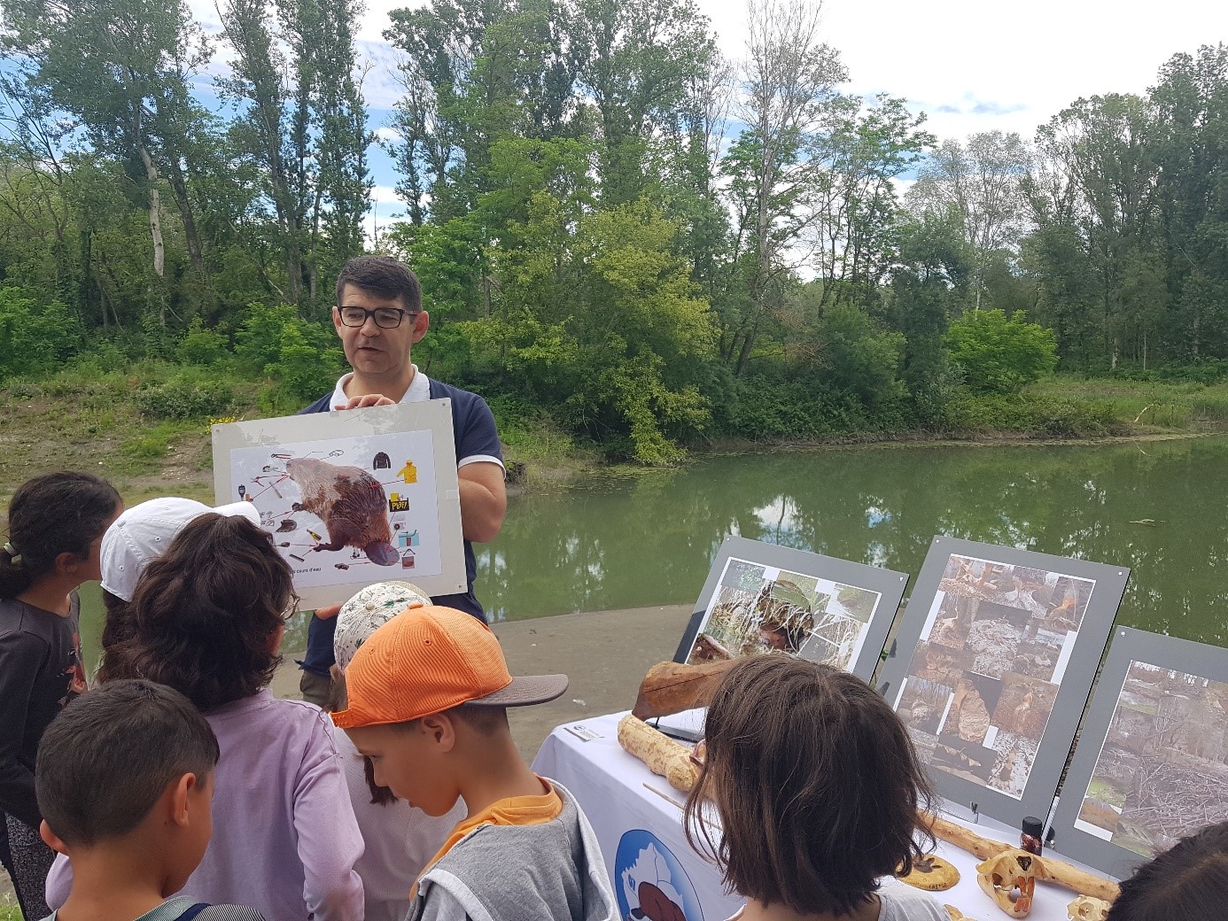 Les élèves de la classe de CE1 ont déjà participé à 2 séances, l’une pour explorer le chantier passé et les traces et indices laissées par la faune sauvage, avec un focus spécial sur les castors ! À cette occasion, l’association Castor et Homme a rejoint Cécile, l’animatrice nature du CEN Rhône-Alpes pour découvrir ces rongeurs plein de ressources. Simplement à l’ouïe ou grâce aux indices retrouvés autour des lacs, c’est plus d’une dizaine d’espèces que les enfants ont identifié. De vrais enquêteurs !