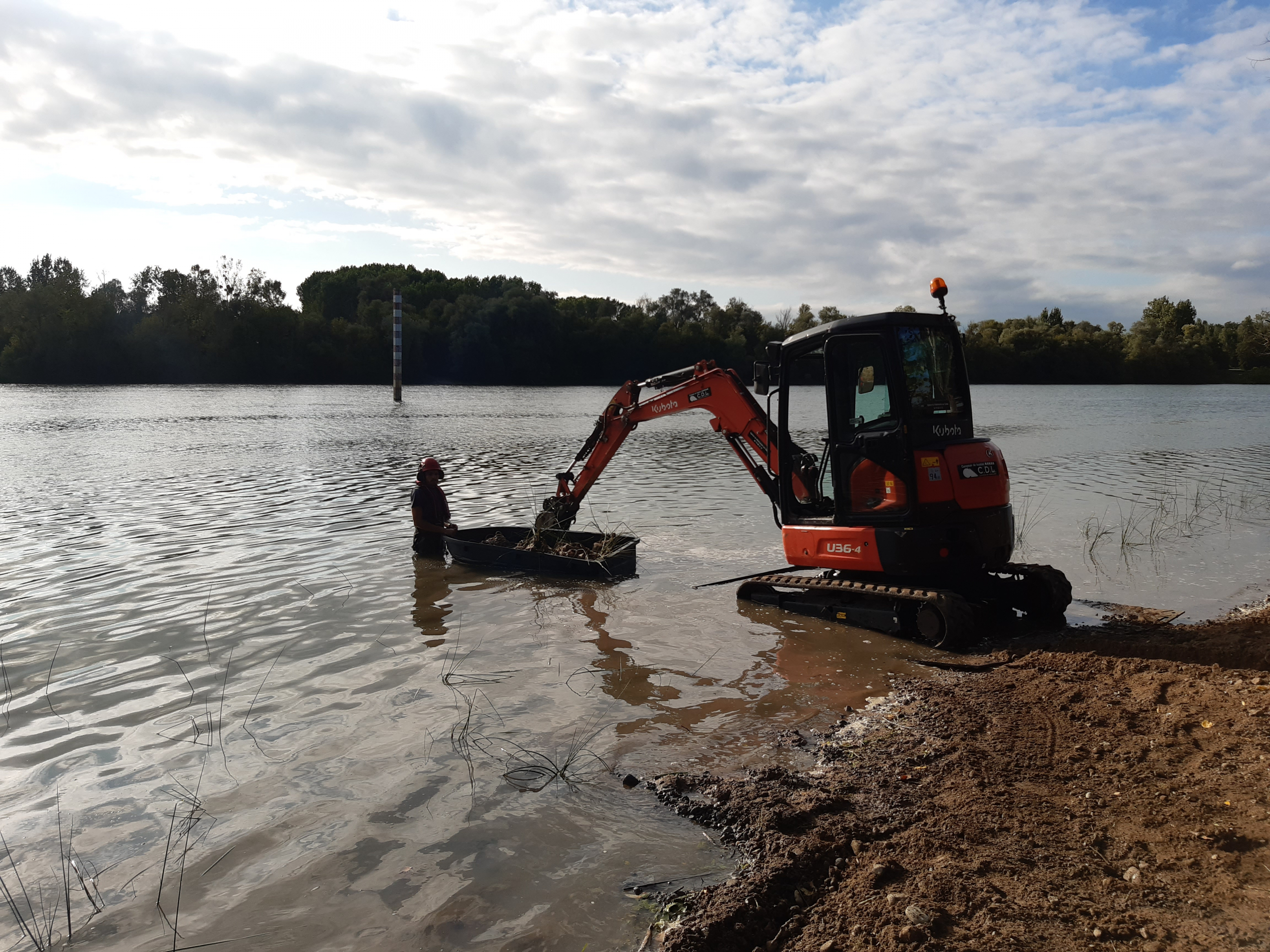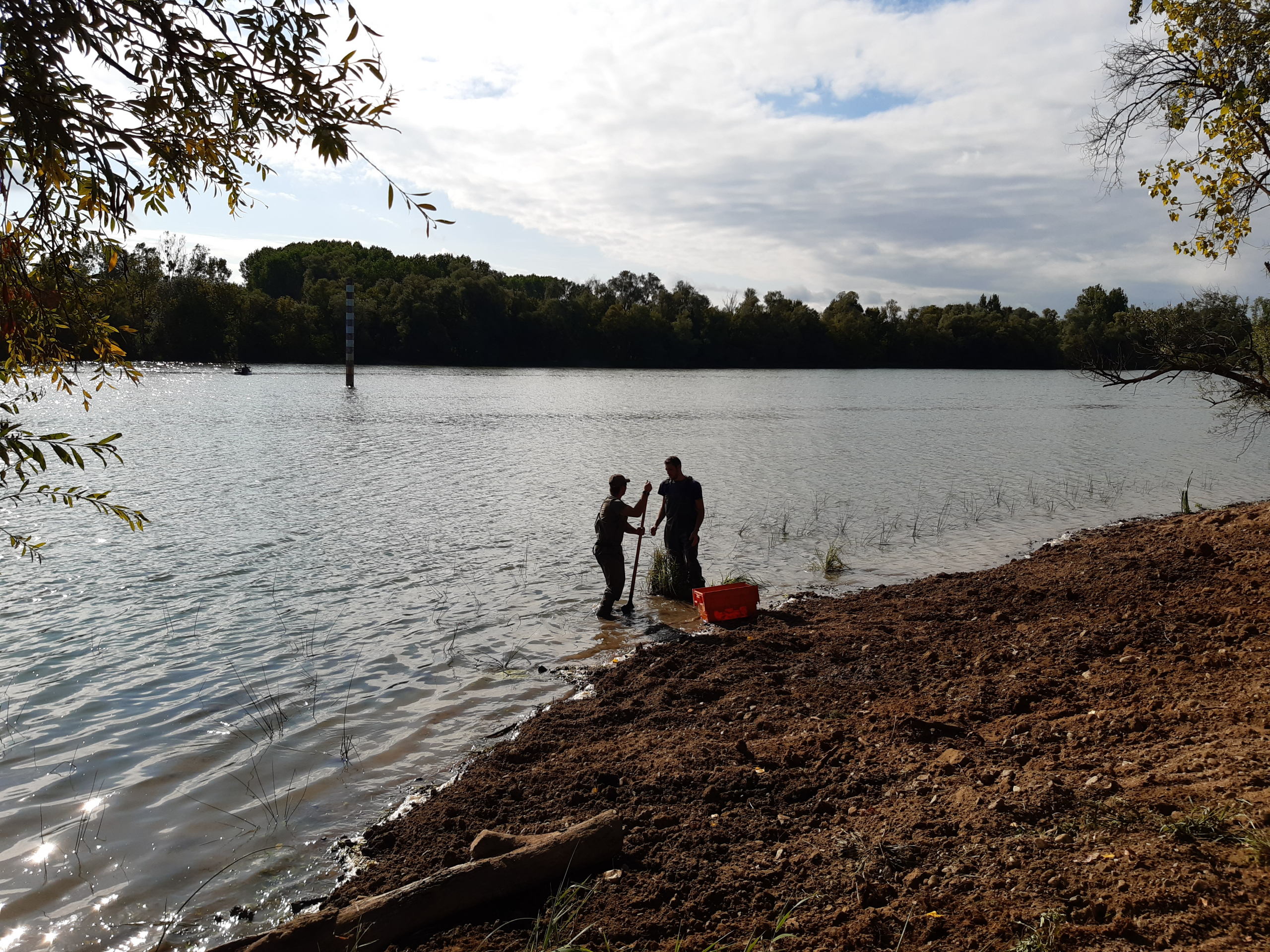 L’équipe travaux du CEN Rhône-Alpes a planté 200 pieds d’hélophytes, des Scirpes lacustres (Schoenoplectus lacustris), sur le platis (zone de haut fond avec 50 à 80cm d’eau au minimum). Cette action vise à stabiliser le platis et à créer des milieux de vie propice pour la faune et ainsi diversifier les bords de Saône.