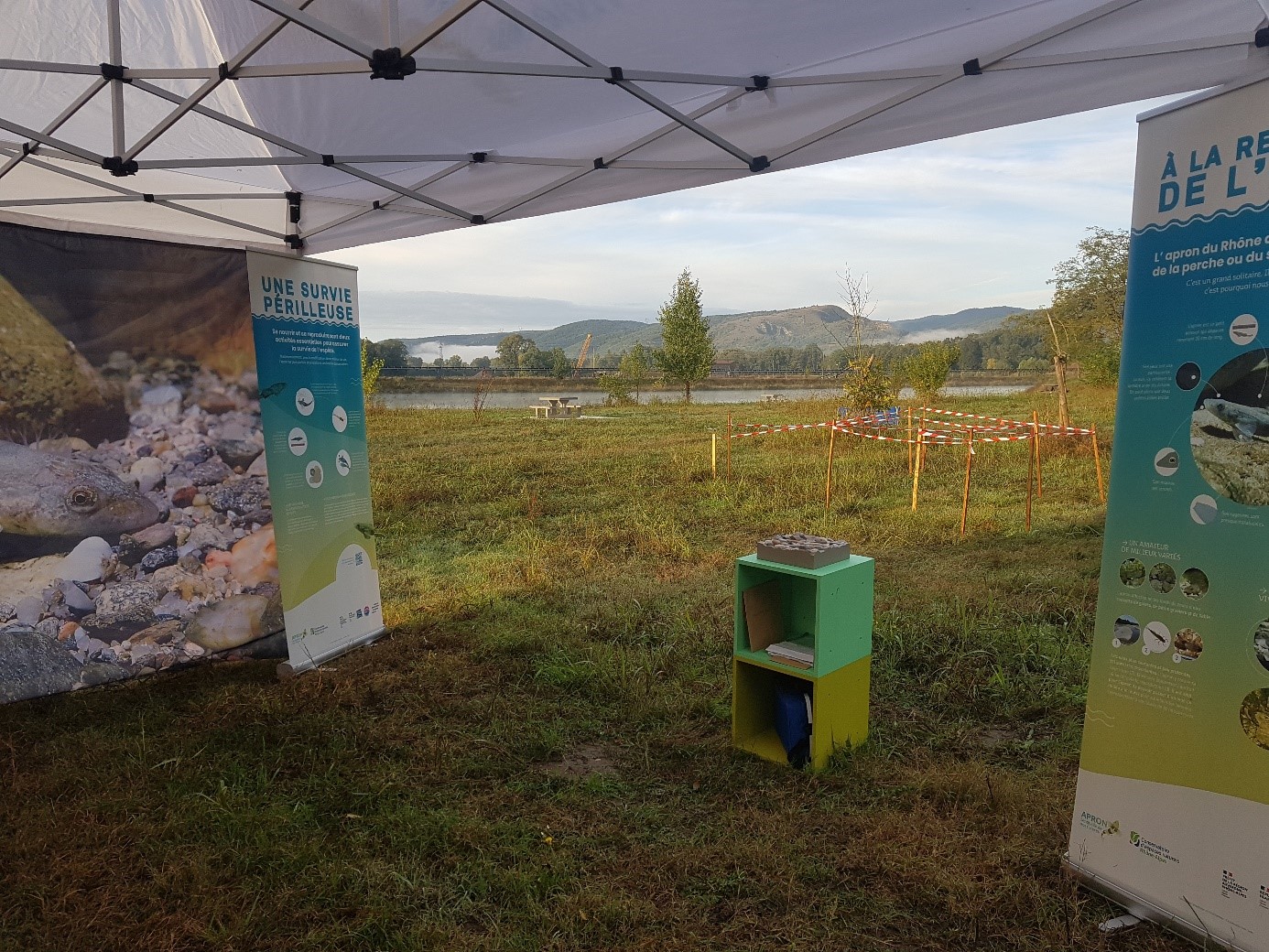 À cette occasion les fédérations de pêche et le Conservatoire d’espaces naturels dans le cadre du Plan National d’Actions en faveur de l’apron ont collaboré pour faire découvrir l’espèce et son mode de vie.