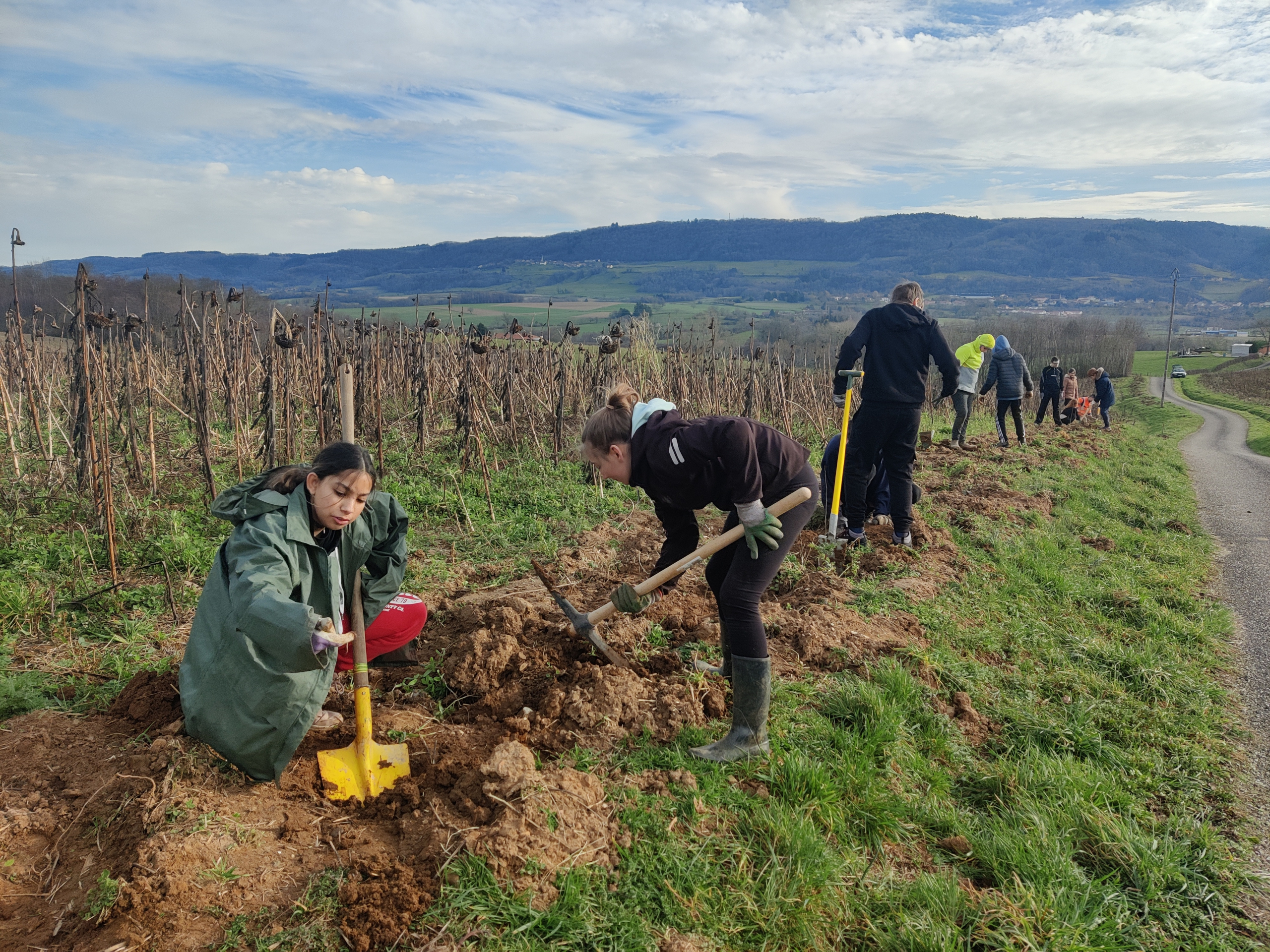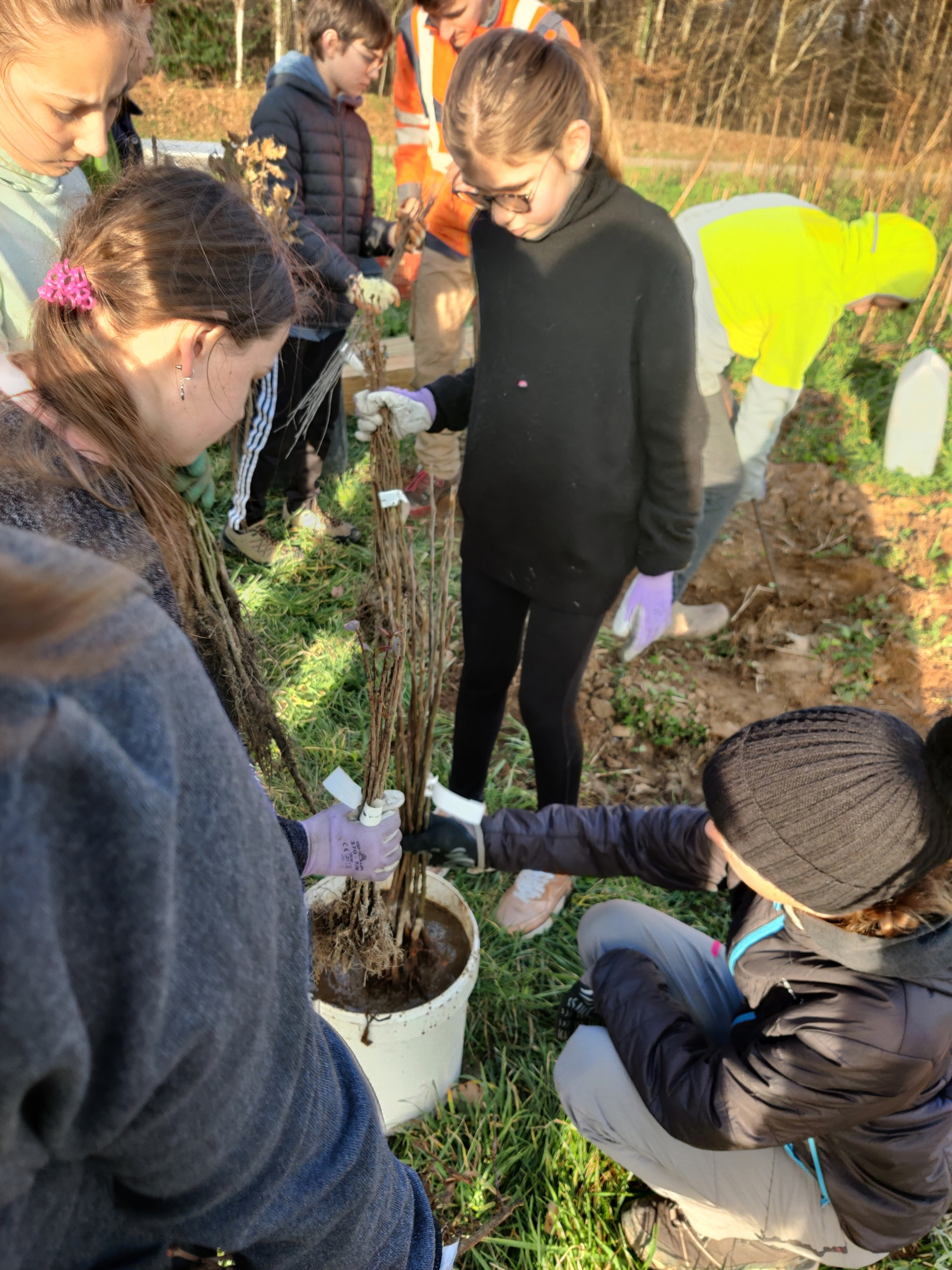 Chantier de plantation de haie par les collégiens de Coligny dans l’Ain